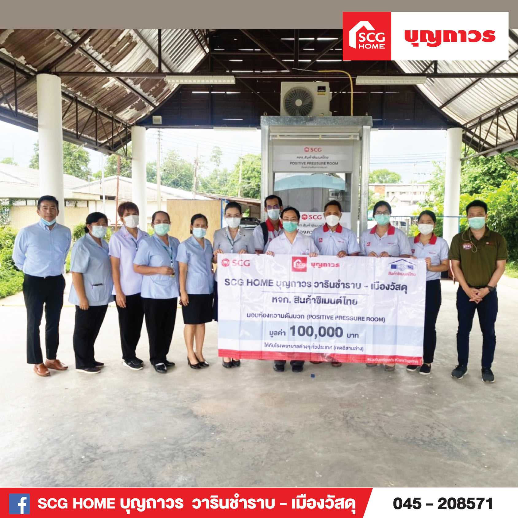 SCG ร่วมกับ SCG Home บุญถาวร เมืองวัสดุ (ในเครือสินค้าซิเมนต์ไทย) มอบห้องความดันบวก สำหรับตรวจหาเชื้อโควิด -19 ให้กับโรงพยาบาลภายในจังหวัดอุบลราชธานี #เราต้องรอด